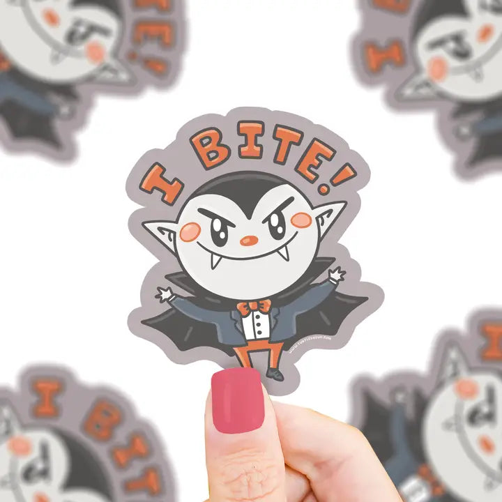 I Bite Vampire sticker. Great to decorate water bottles, laptops, phone cases, notebooks and more.